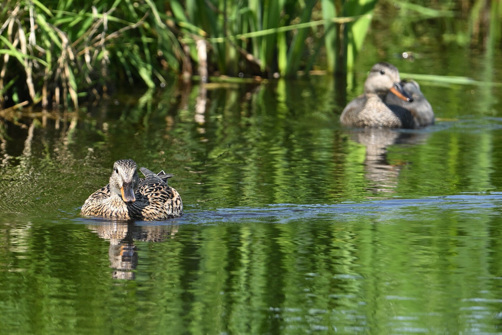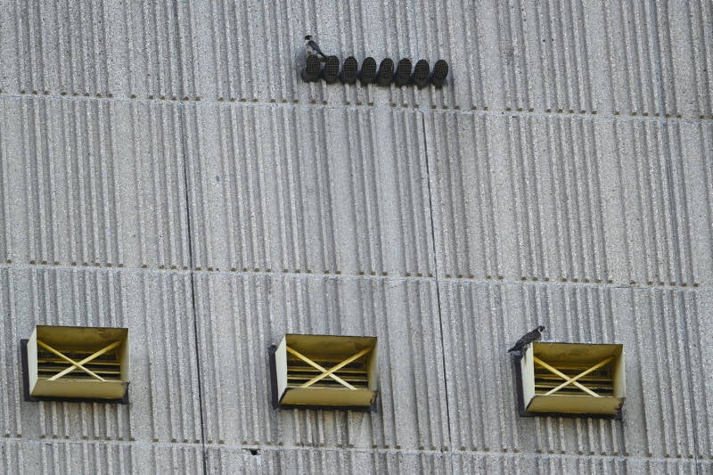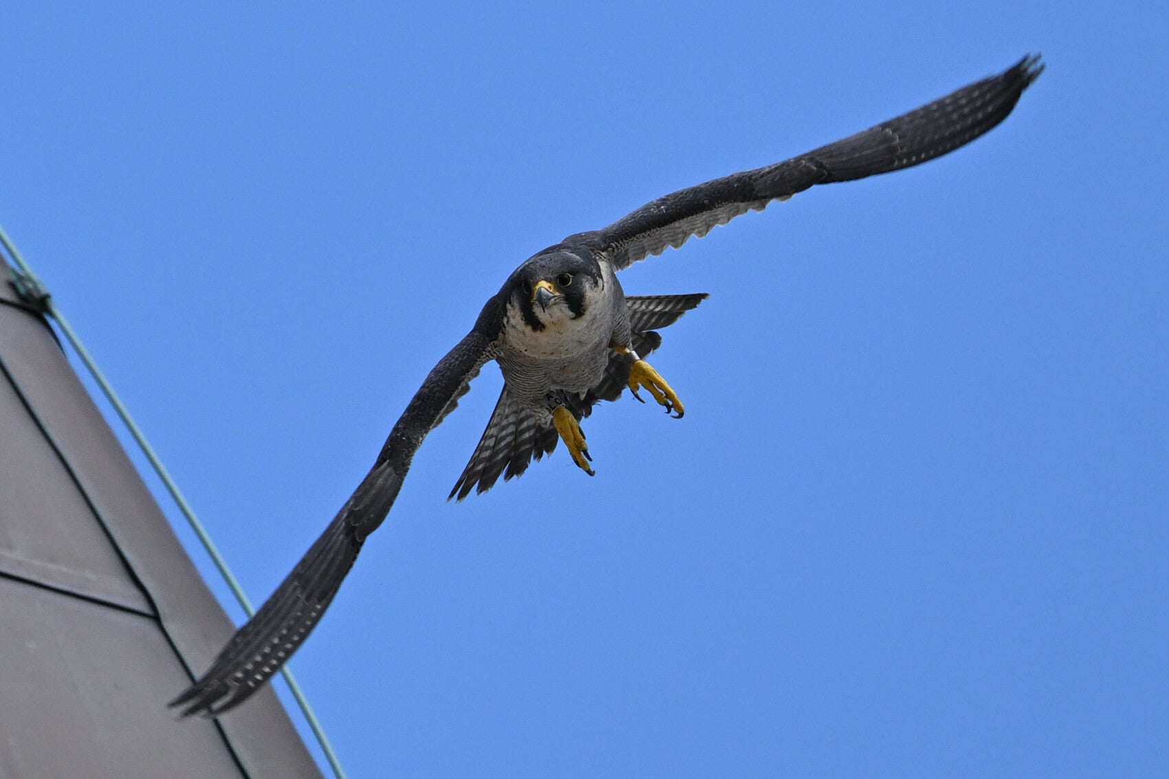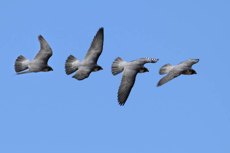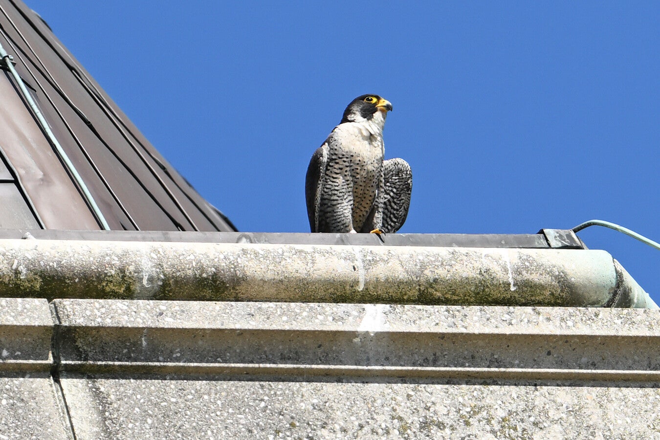 Betreft een wijfje van net een jaar oud en een volwassen mannetje. Vreemd genoeg maken ze geen gebruik van de nabije masten en ook de