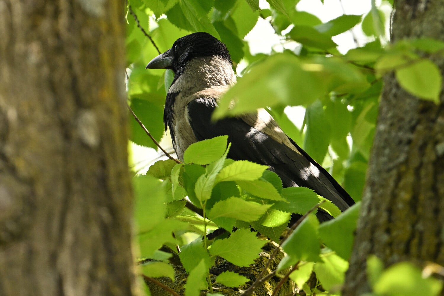 In de Scheveningse Bosjes laat de kale Kraai zich wat langer bekijken dan tijdens de vorige tref..