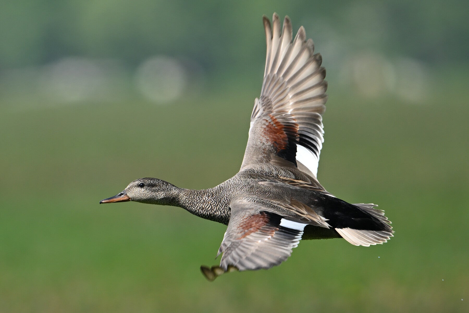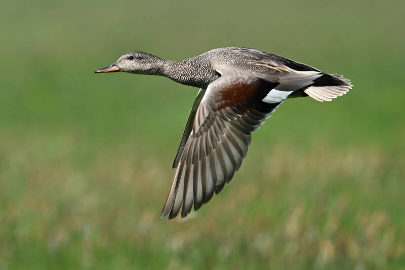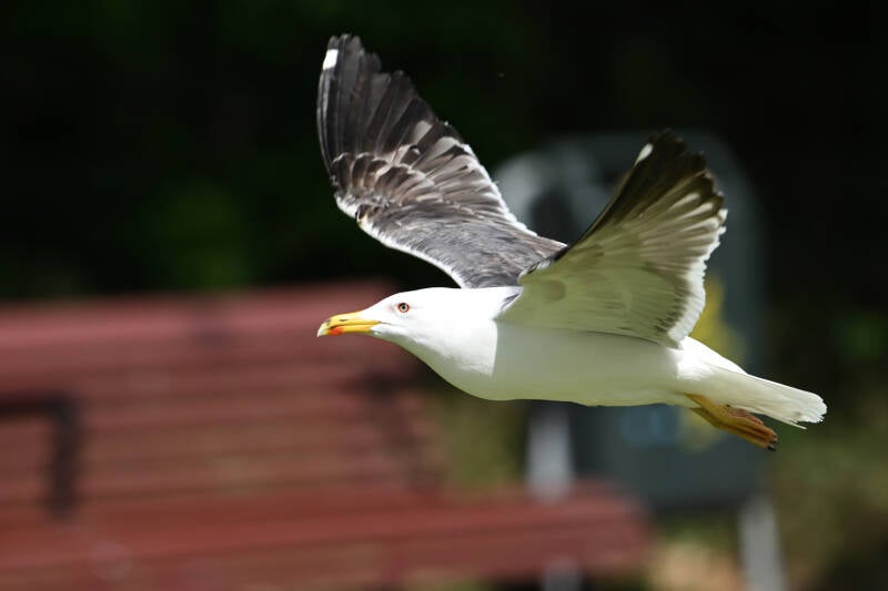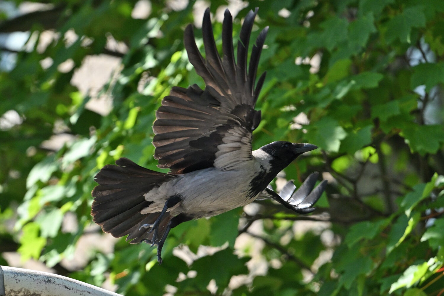 De opgewipte veertjes zijn ook te zien als hij wat later bijna recht op me komt afgevlogen :