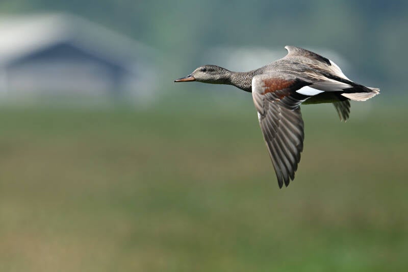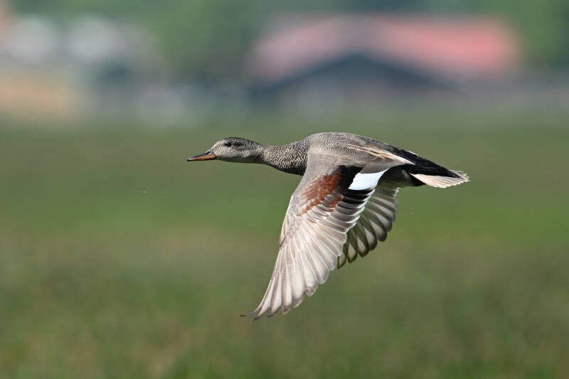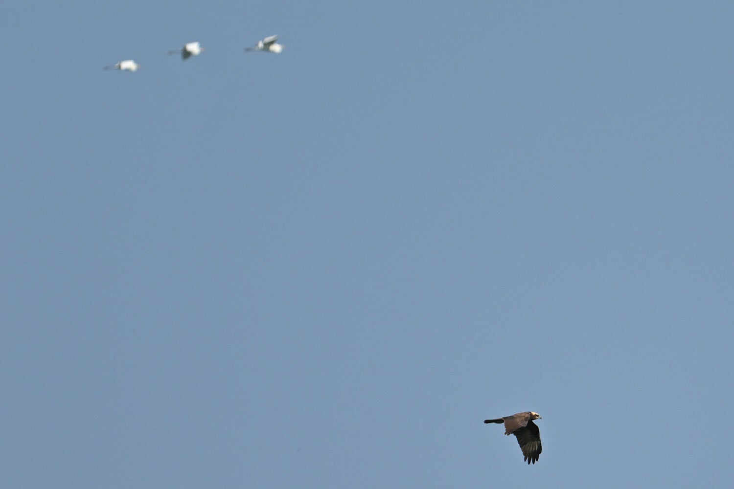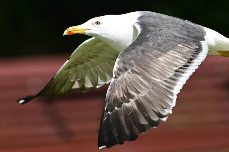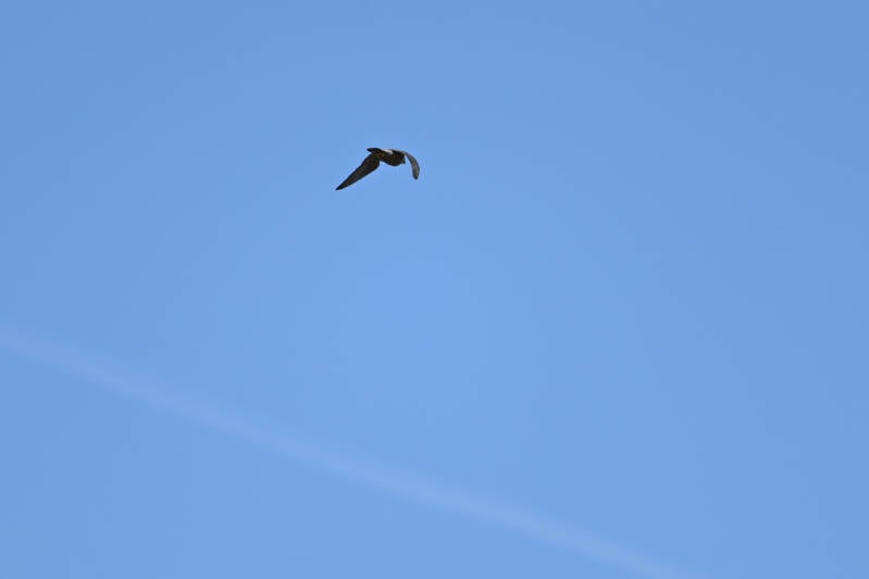 Eenmaal stuift hij op de harde wind redelijk laag voorbij :