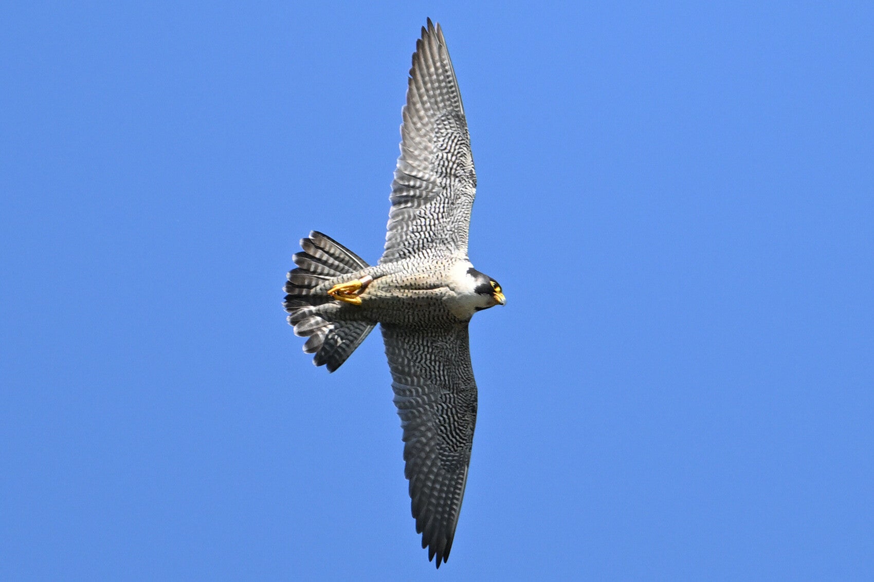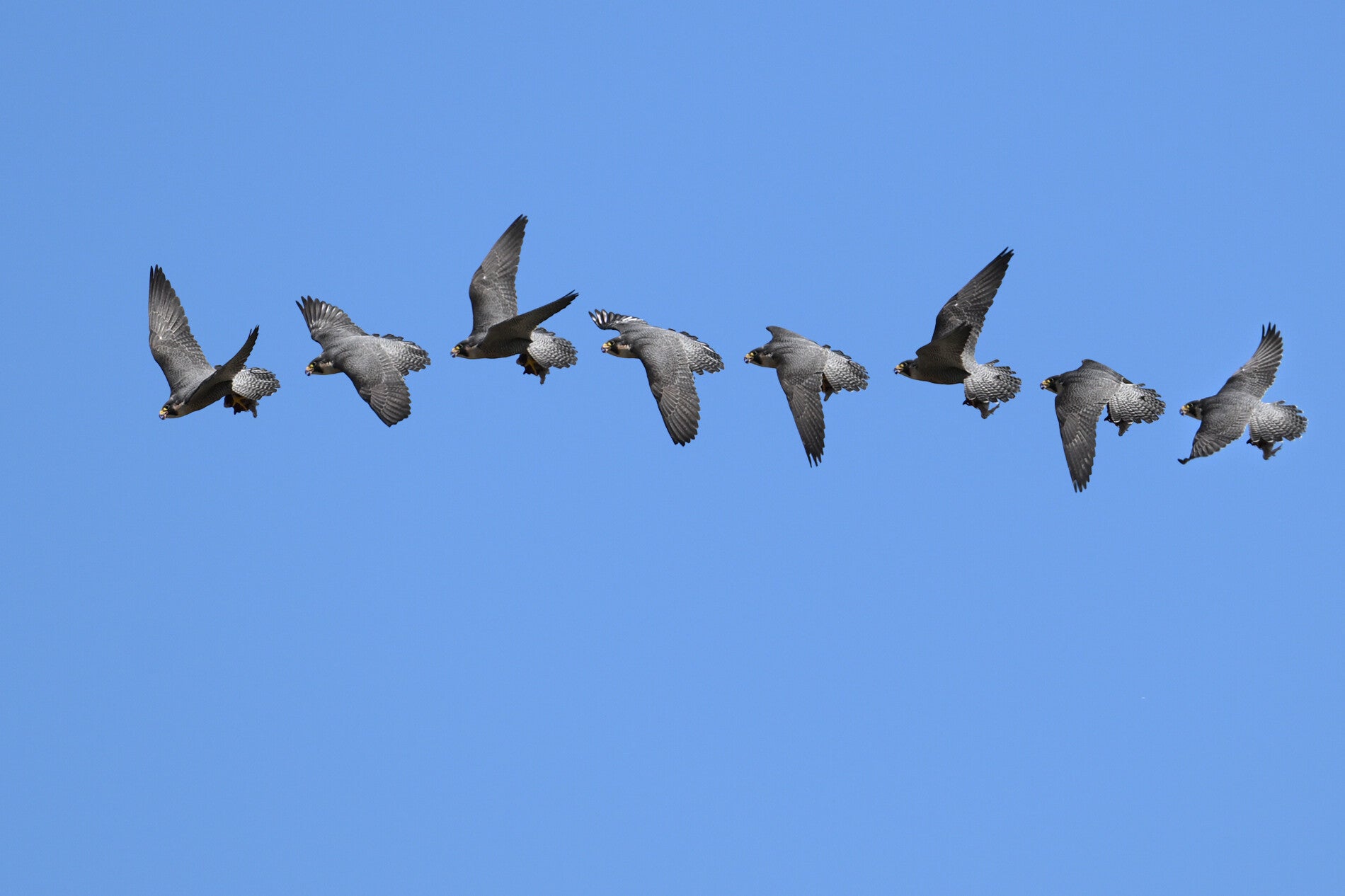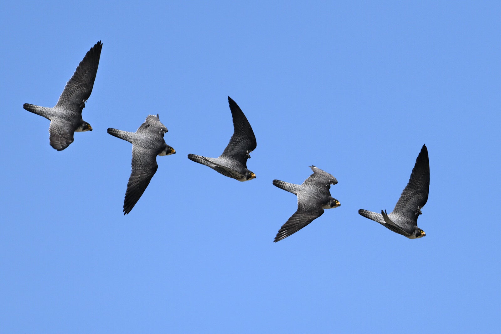 Eenmaal stuift hij op de harde wind redelijk laag voorbij :