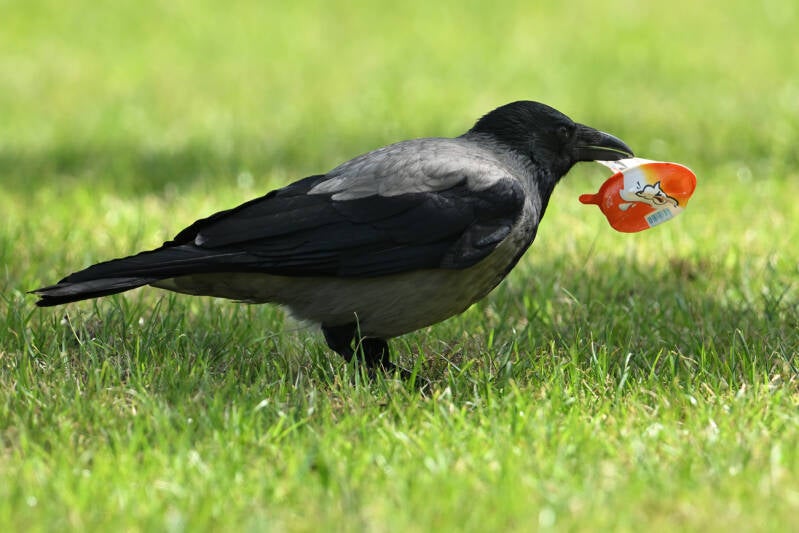 -De Bonte Kraai op insectenjacht. Tenminste, zover die er momenteel zijn door de droogte :