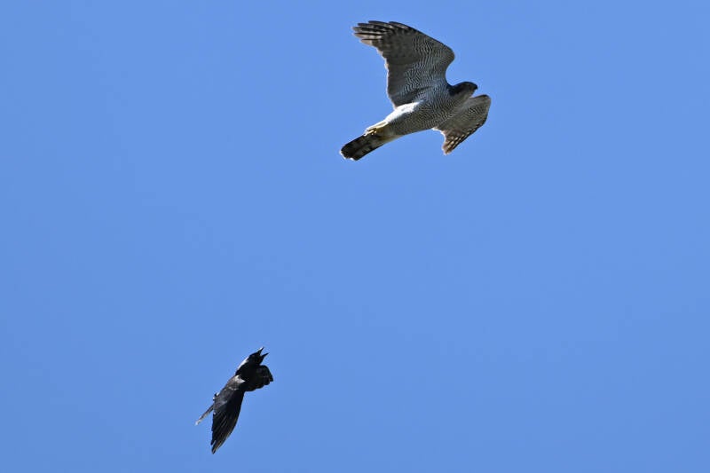 20 Mei : Géén Bonte Kraai, maar er scheuren wel 2 Sperwers voorbij die daarbij mooi de verschillen in streping tonen...(12 foto's-montages)
