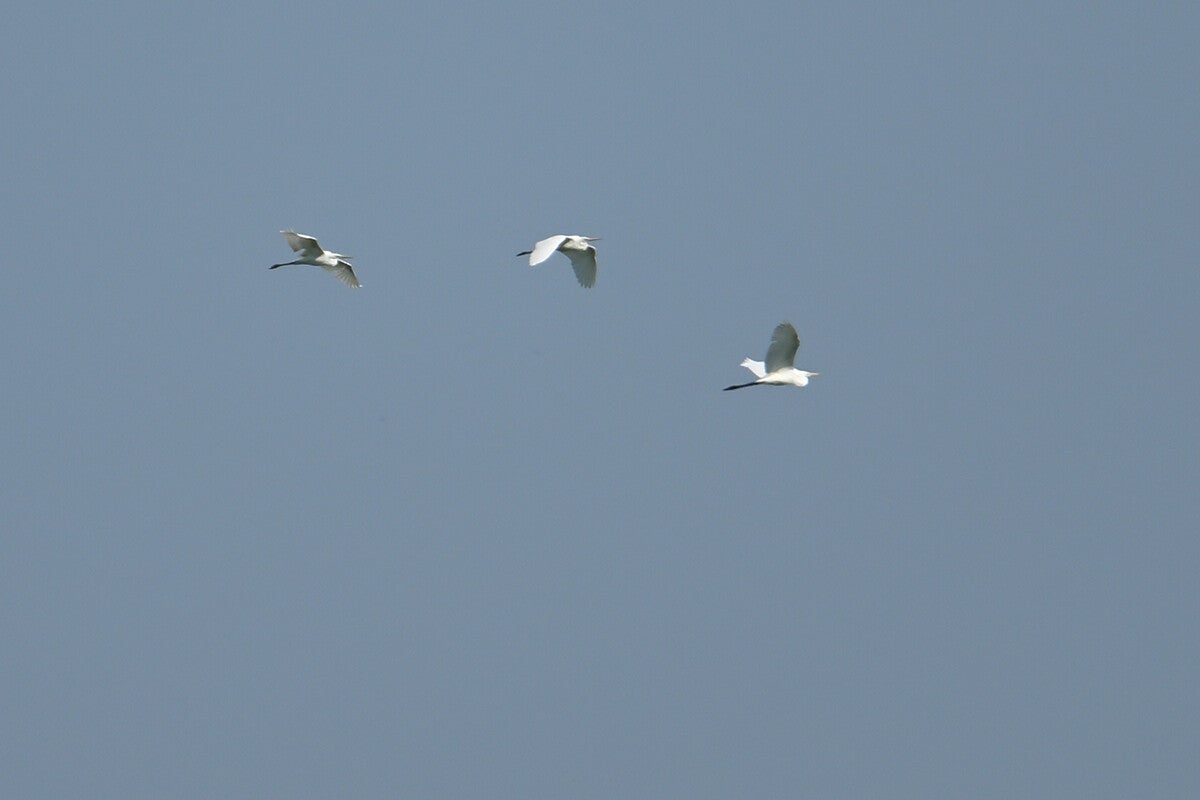 -Op de achtergond zijn toevallig 3 Grote Zilverreigers op doorttrek zichtbaar.