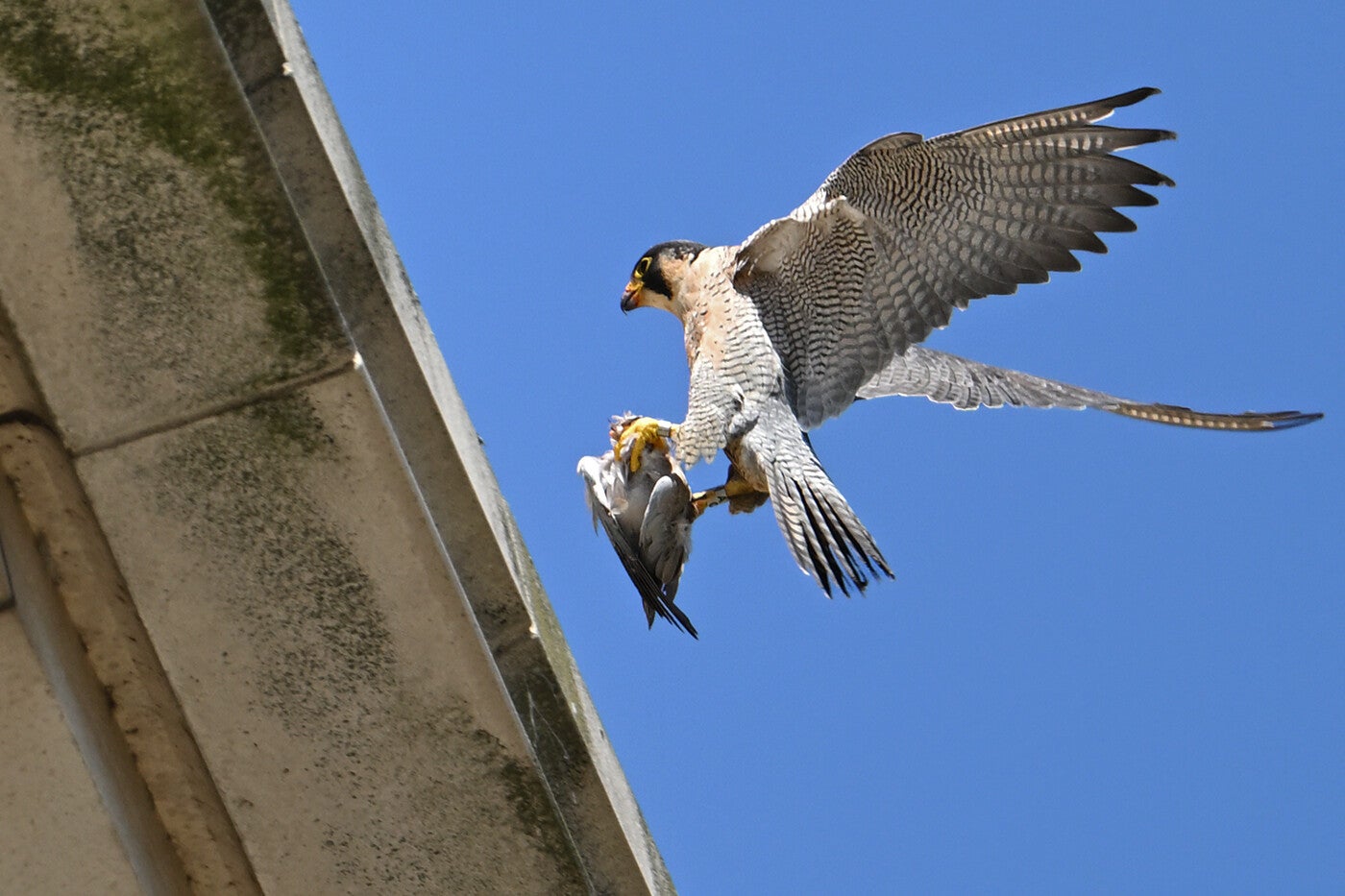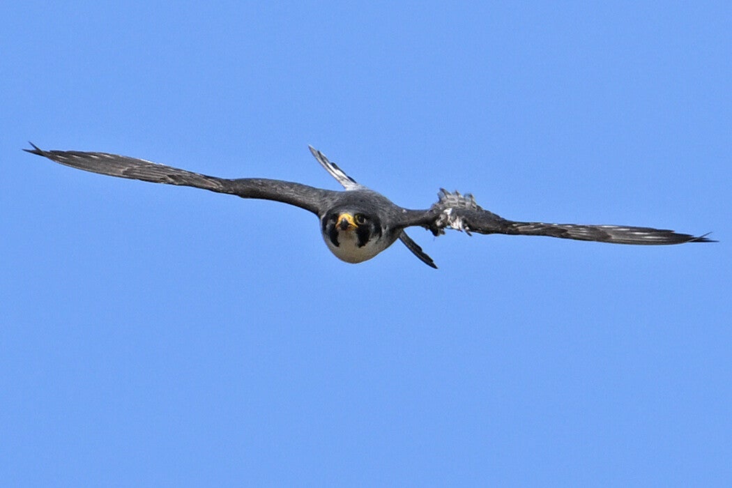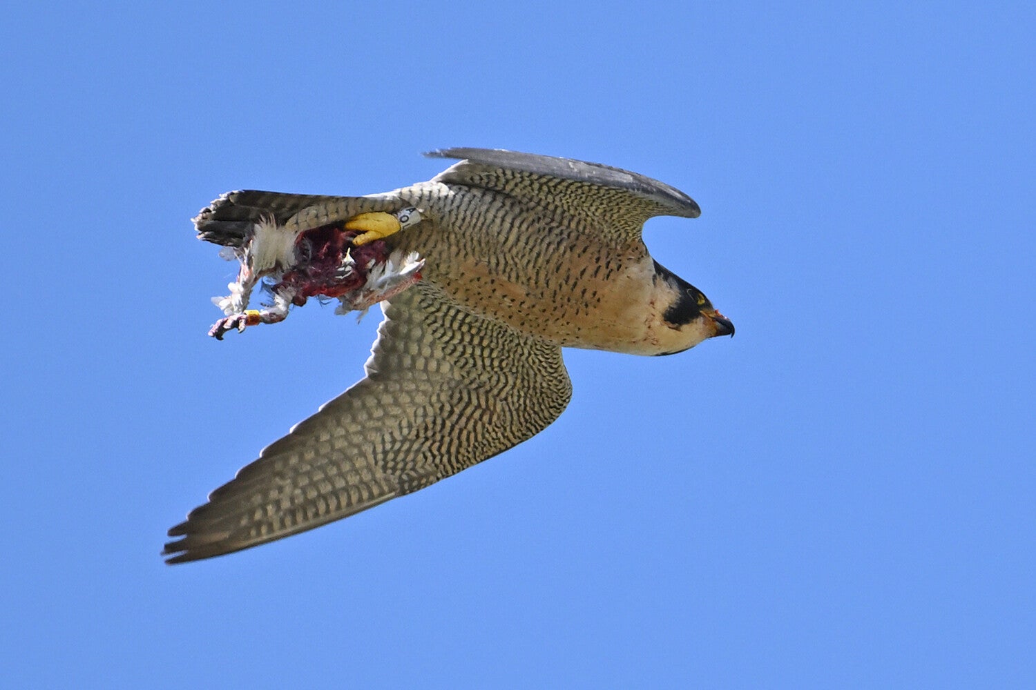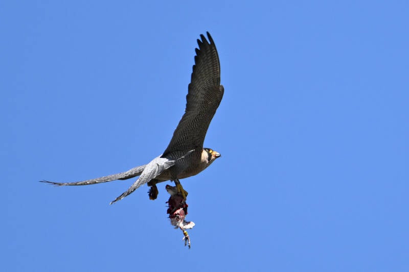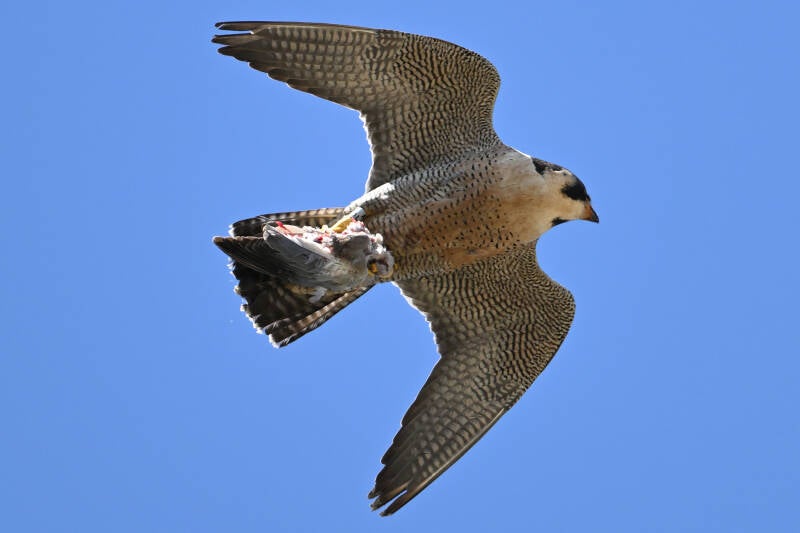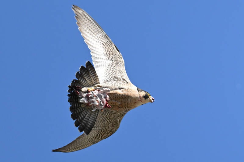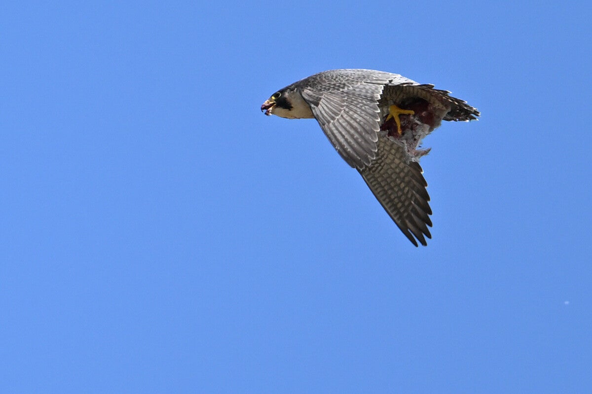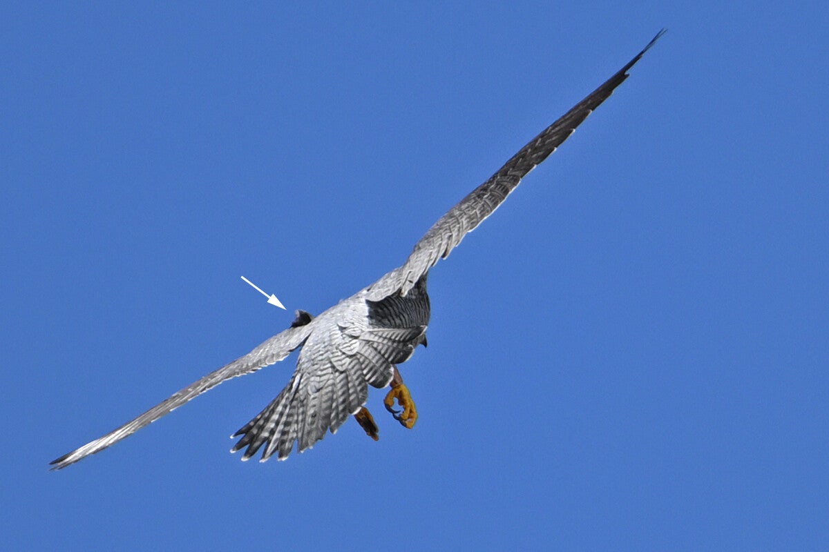 Ze vliegt een rondje om op de bakjes neer te strijken waar een opgeslagen prooi ligt :