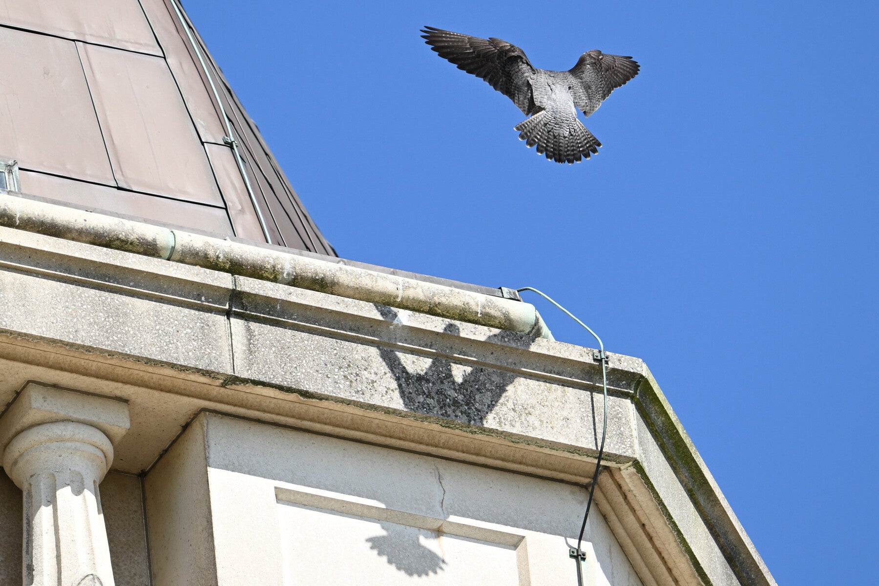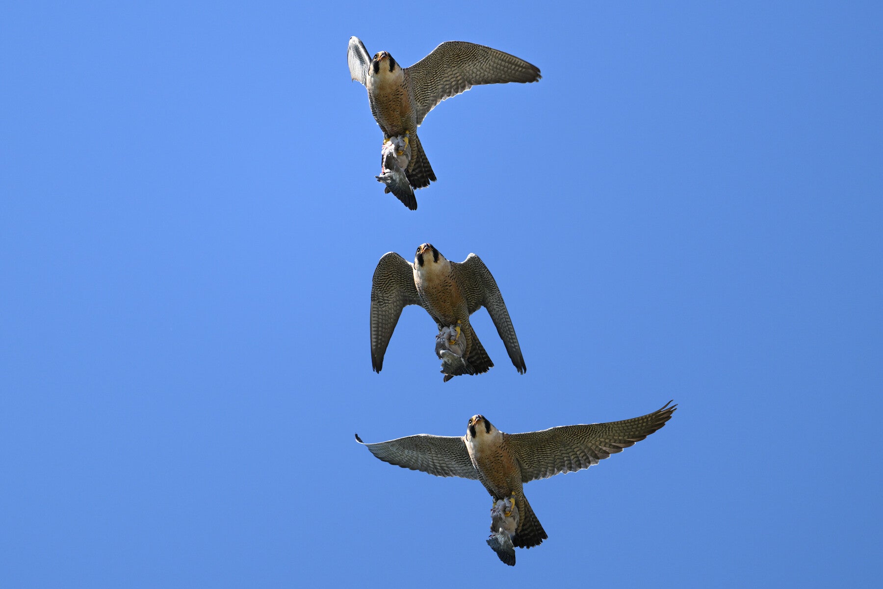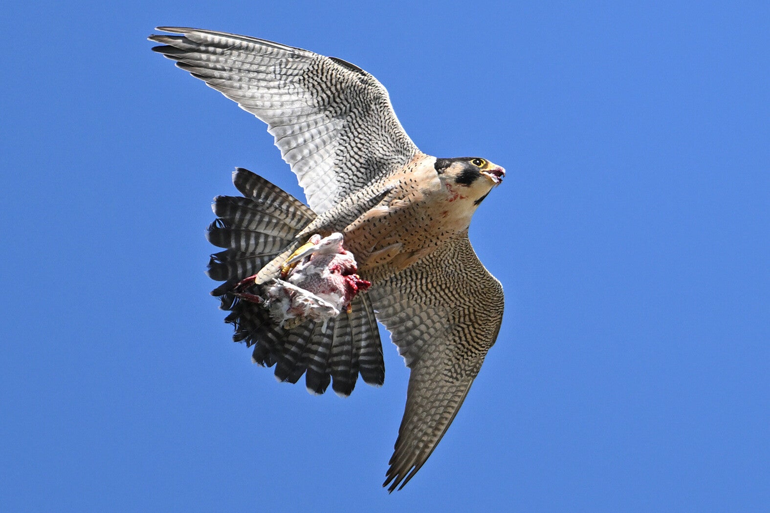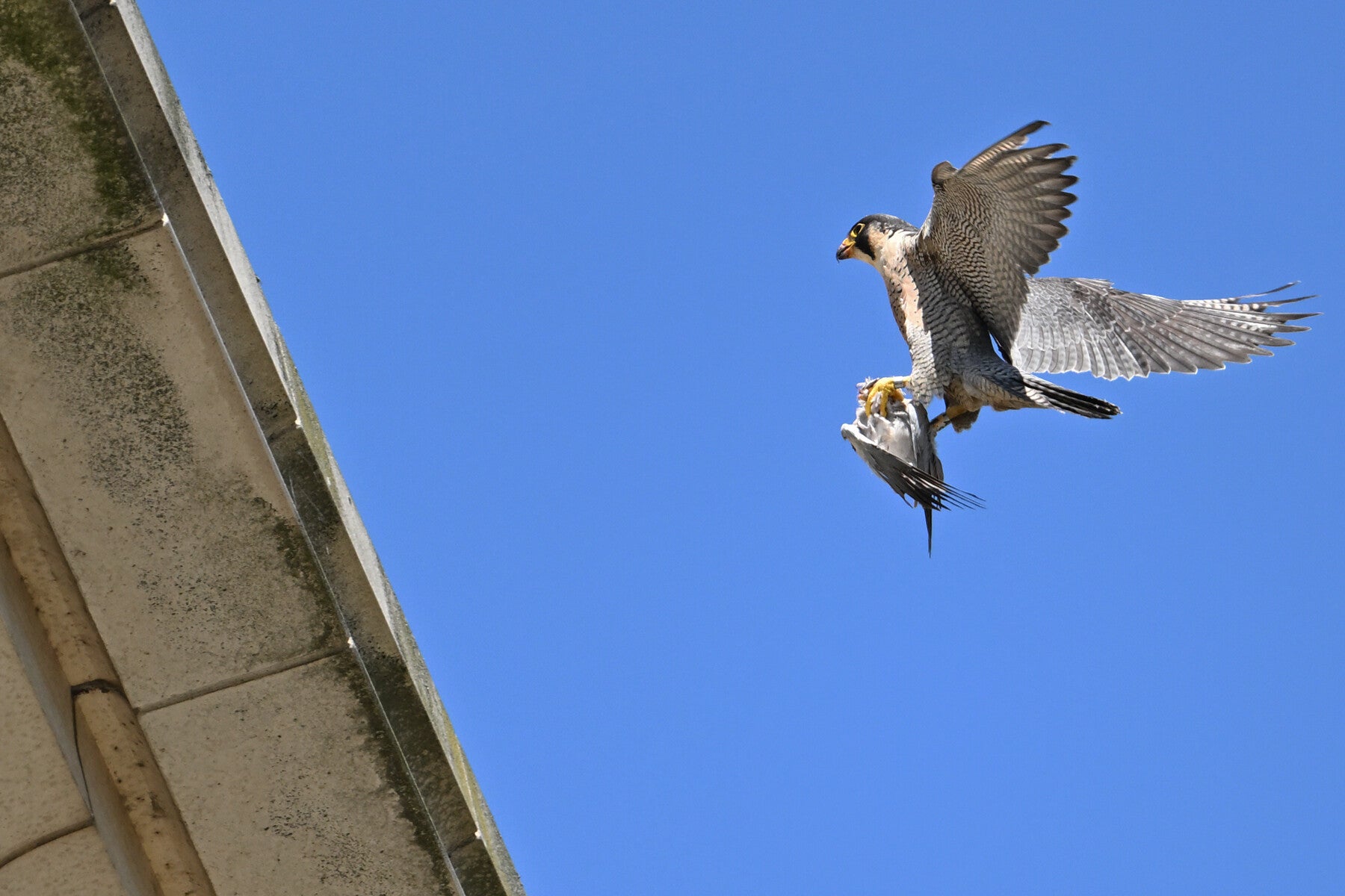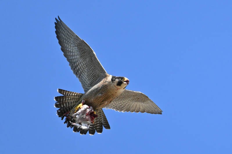 Ze vliegt een rondje om op de bakjes neer te strijken waar een opgeslagen prooi ligt :