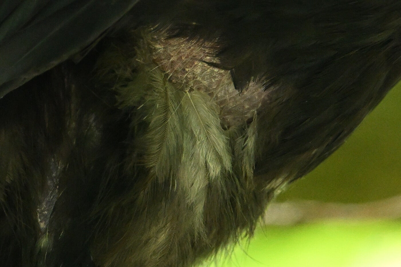 De opgewipte veertjes aan de vleugelachterrand in het verlengde van de verwonding bevallen me ook niet :