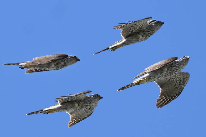In verband met de plaatselijke tamme Duiven kwamen er in korte tijd 2 Sperwers op topsnelheid langs..: