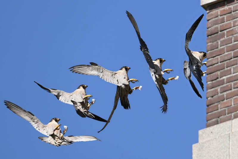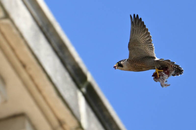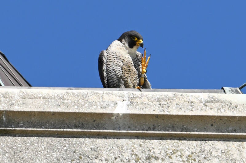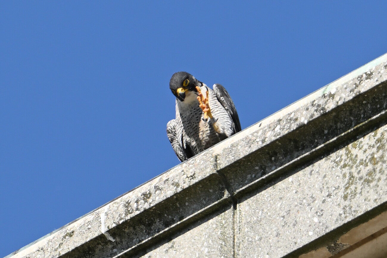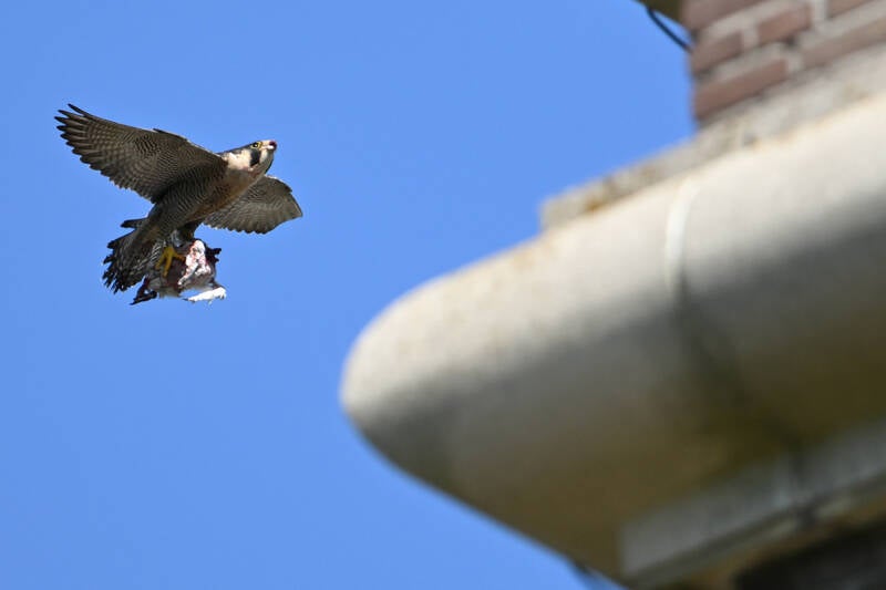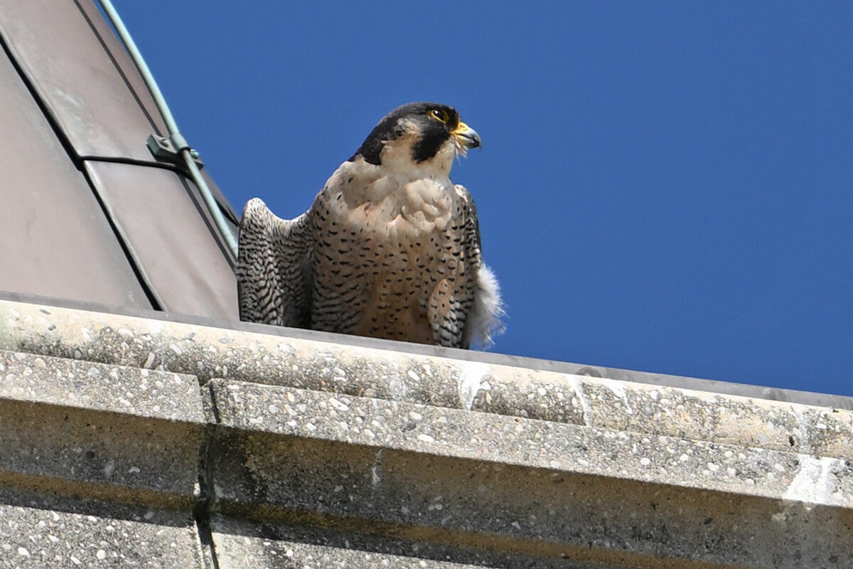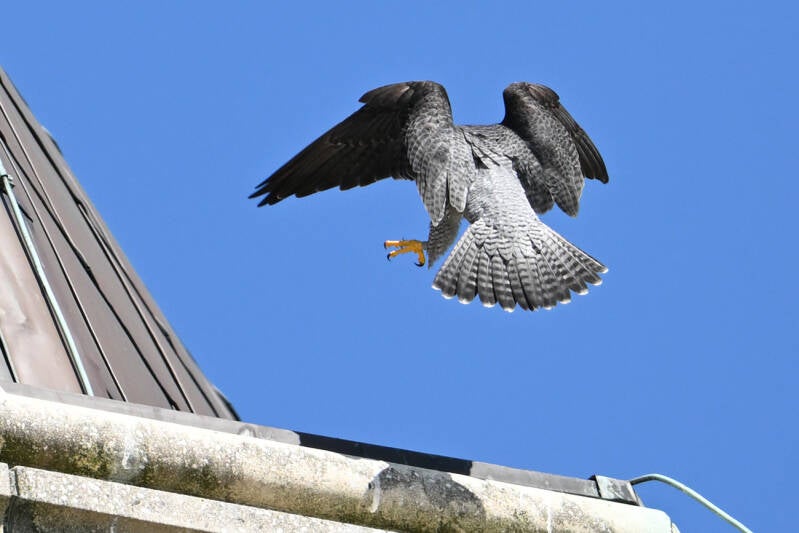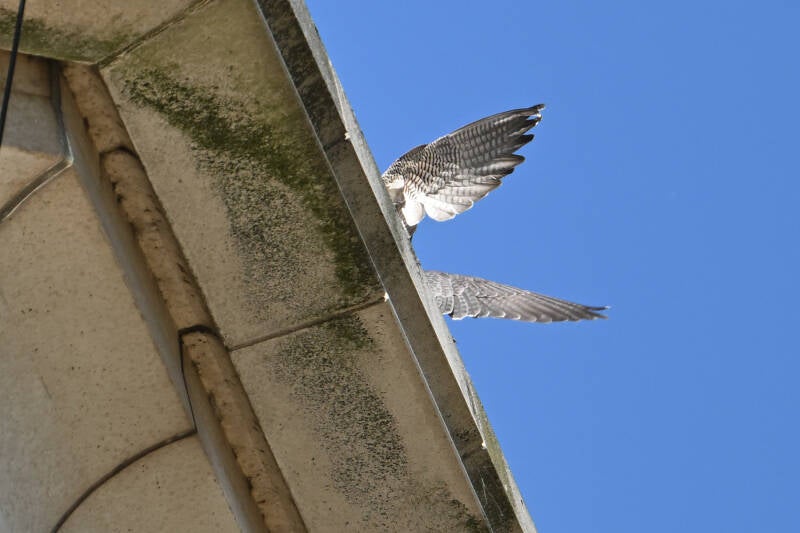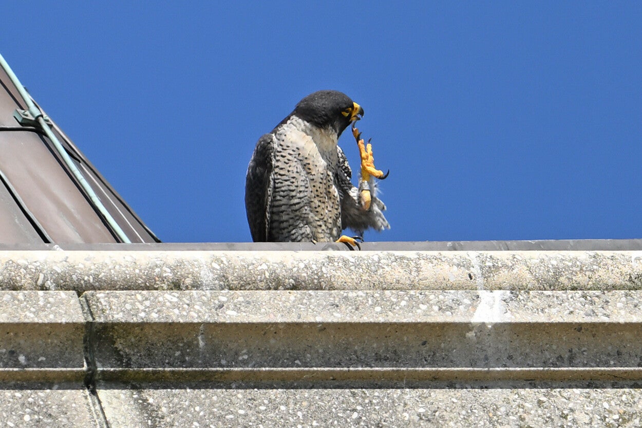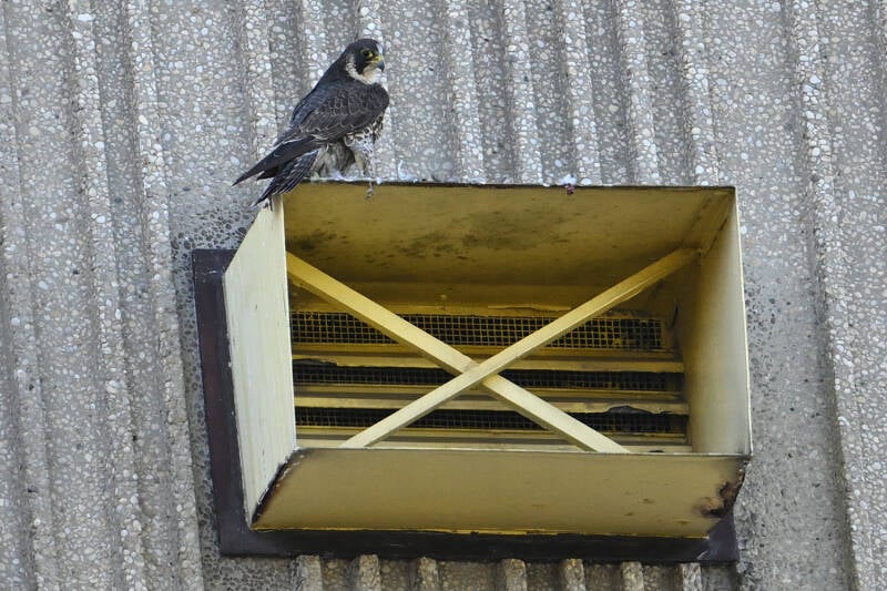 22 Mei : Collega's die vlakbij het McH wonen zien al een paar weken in de late middag een koppel Slechtvalken arriveren op de bekende bakjes.