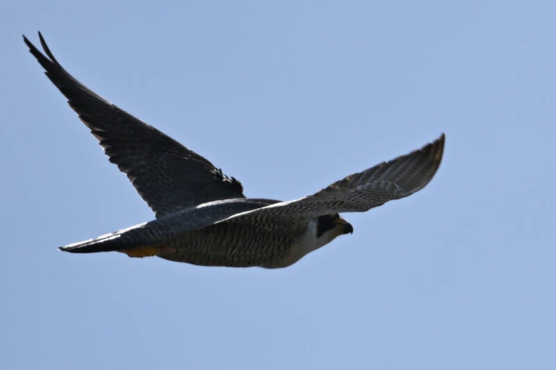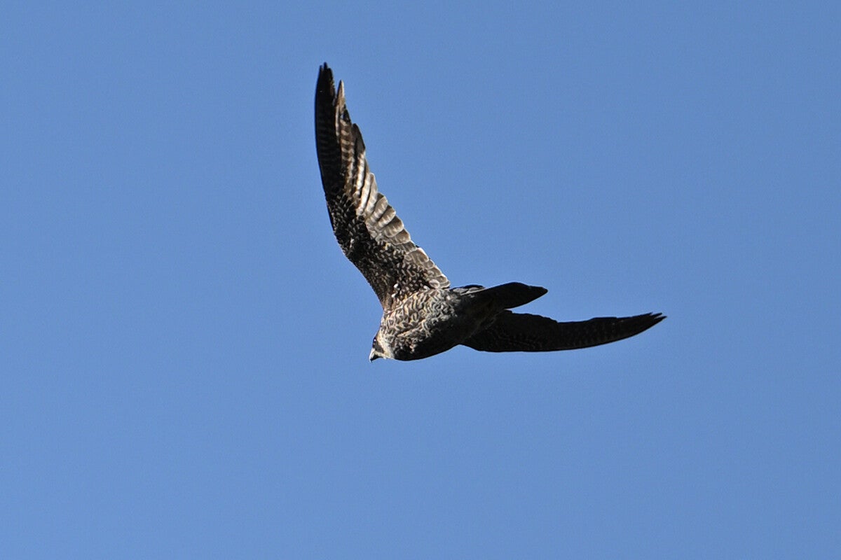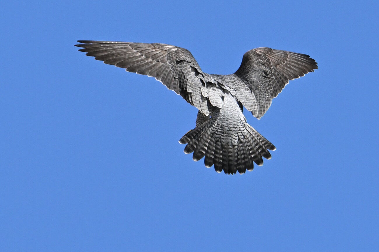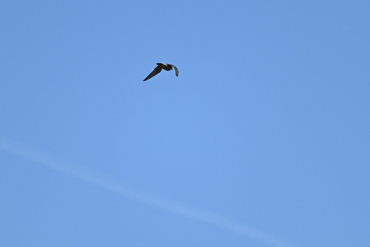 Na meer dan een uur posten is er eindelijk een Valk te zien :