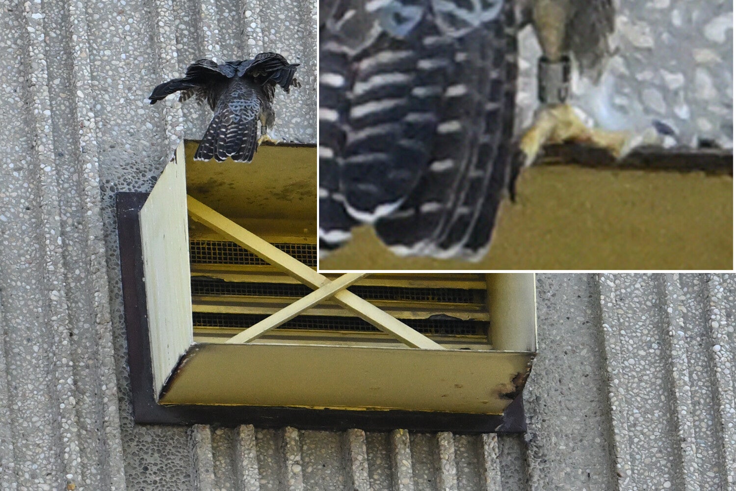 29 Mei Video : Tijdens een late avondvoedering door Moedervogel Alo zien we hoe het jonge wijfje een Duivenpoot inclusief ring naar binnen werkt.