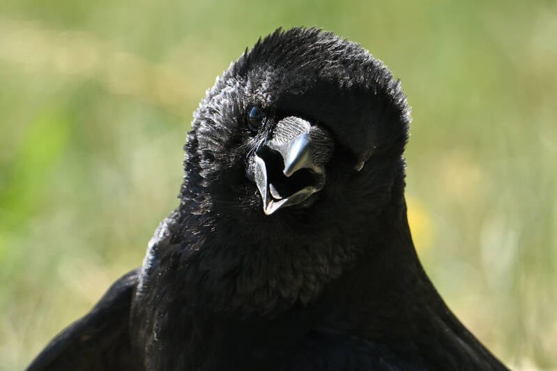 Let op hoe ze van dichtbij het uiterlijk van een Raaf benaderen..: