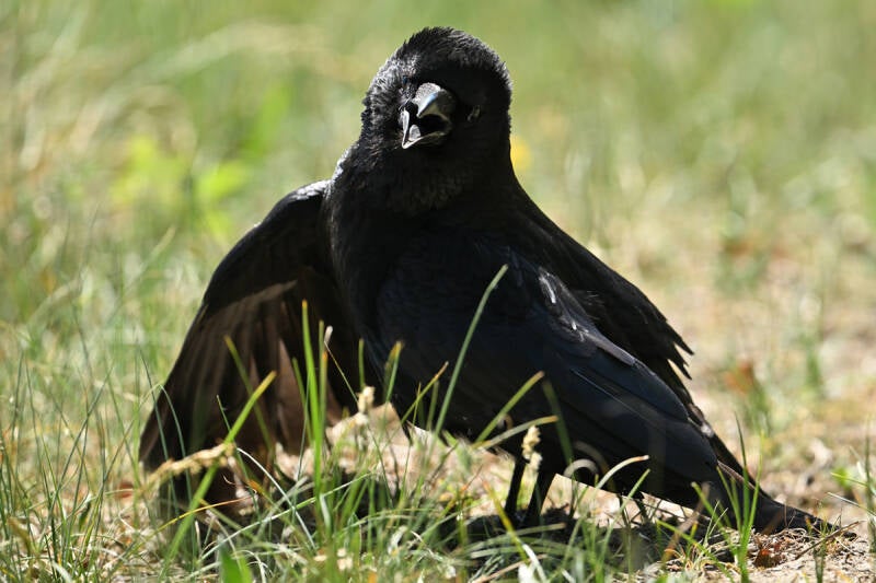 Een vaste Kraai in de Zonhouding :