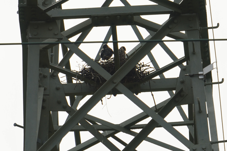 Er gebeurt een tijdje weinig, de oudervogels zijn af en toe vliegend te zien en strijken even samen neer op mast 18 :
