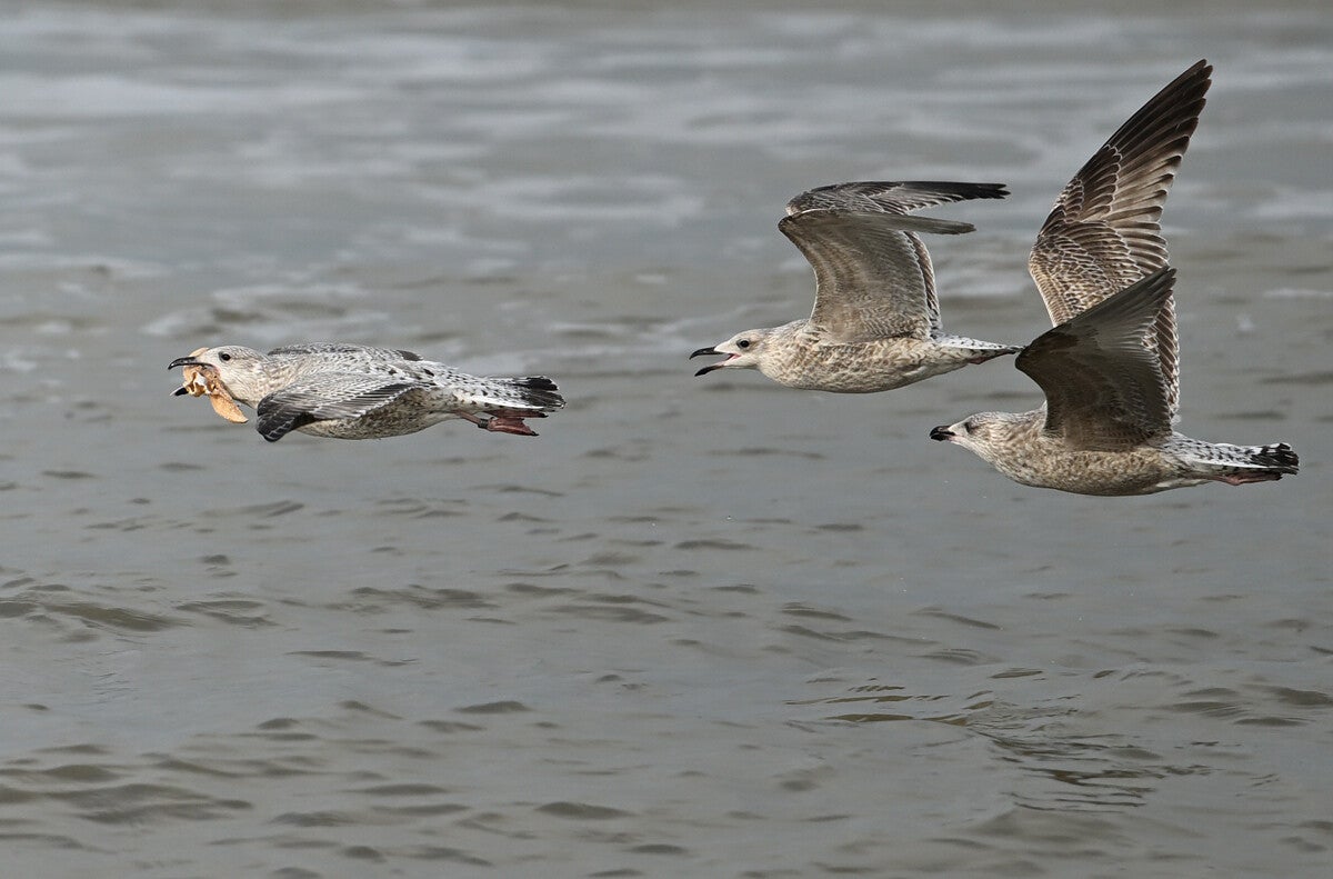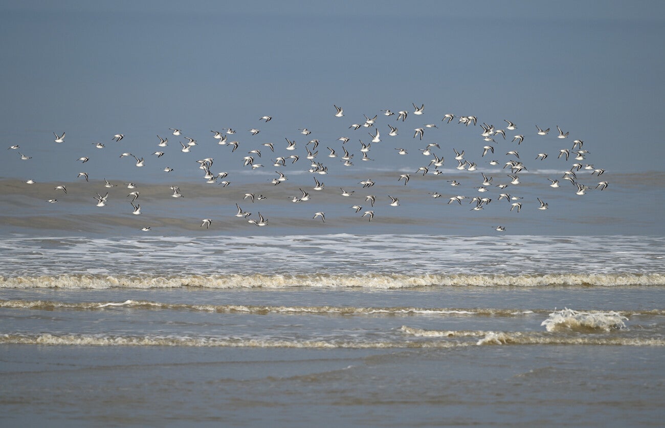 Er komt vanuit Zee een donkere lucht opzetten waar de Drieteentjes mooi tegen afsteken..: