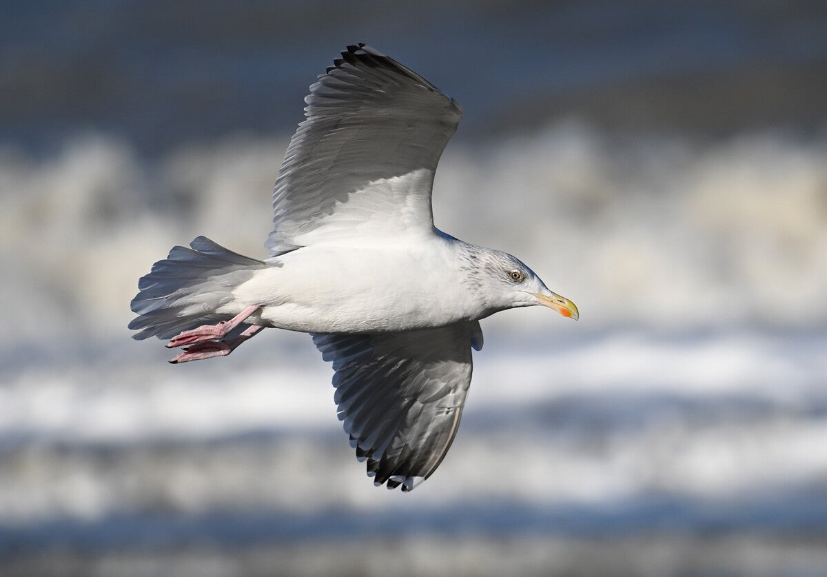 De Nikon Z9 met de Sony 200-600m lens via de Megadapter blijft focussen op de kop van de deels verscholen jeugdige Meeuw..: