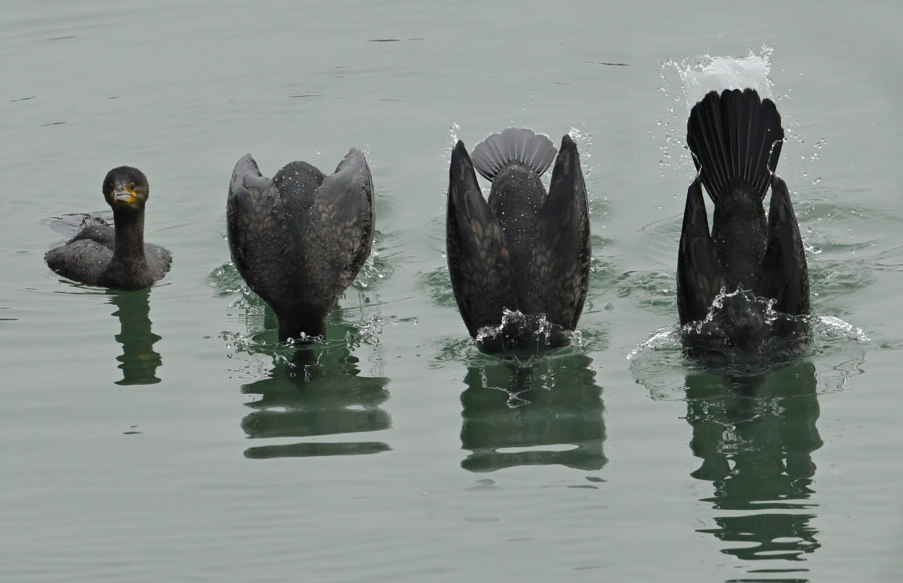 -Duikstudie Aalscholver uit serie van 20 beelden per seconde bij 1/2000e seconde.