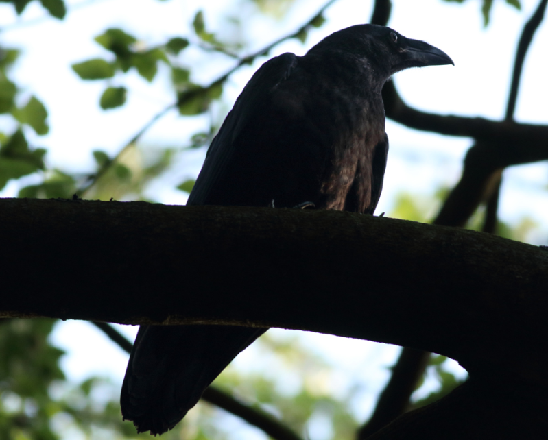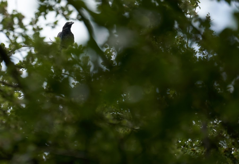 -De jonge Raven vandaag weer direct aangetroffen in en boven de grote villatuin, ze maken nog steeds maar zeer weinig uitstapjes :