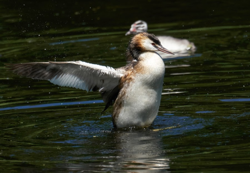 alweer tevoorschijn met een prooi en zwom hiermee naar de overkant :