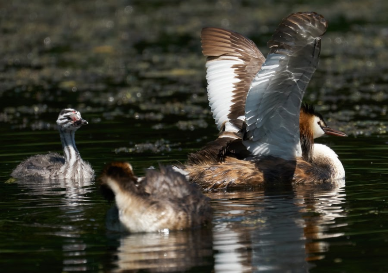 -Hopelijk toeval, het derde jong kan op stap zijn met een oudervogel.