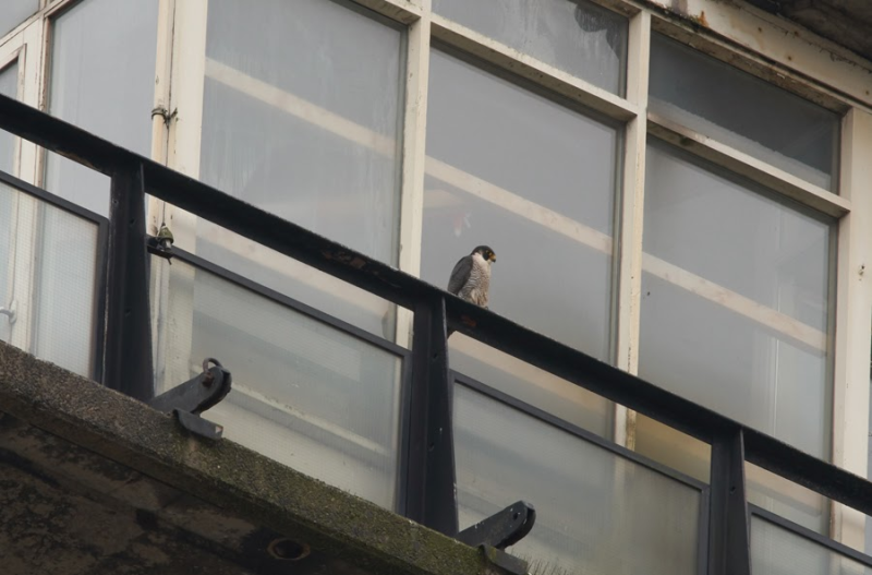 -Op mast 28 een jonge Slechtvalk, mogelijk betreft het 'Bonbon' van het Langegracht-broedsel maar hij liet zijn ring helaas niet zien :