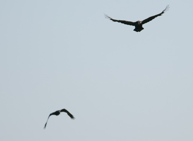 De andere veel hoger vliegende vogel lijkt ook een mannetje te zijn :