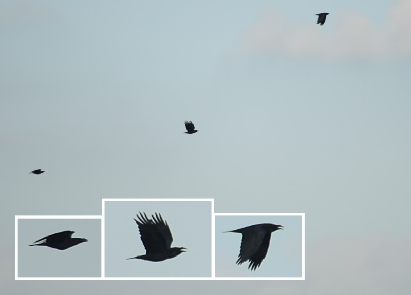 -Helaas alles wel van 700 meter vastgelegd. Buizerd en Raaf (r) :