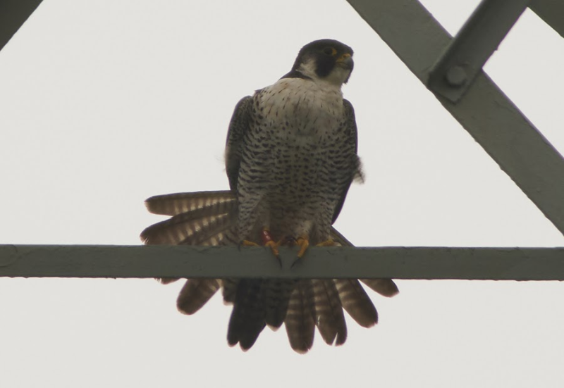 -Een kippenvelmoment bij mast 19.....Een grote Slechtvalk zit laag op het ijzerwerk :