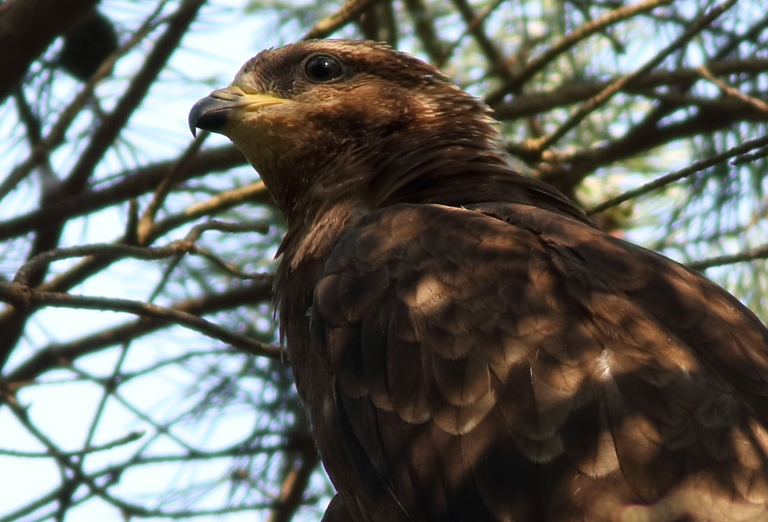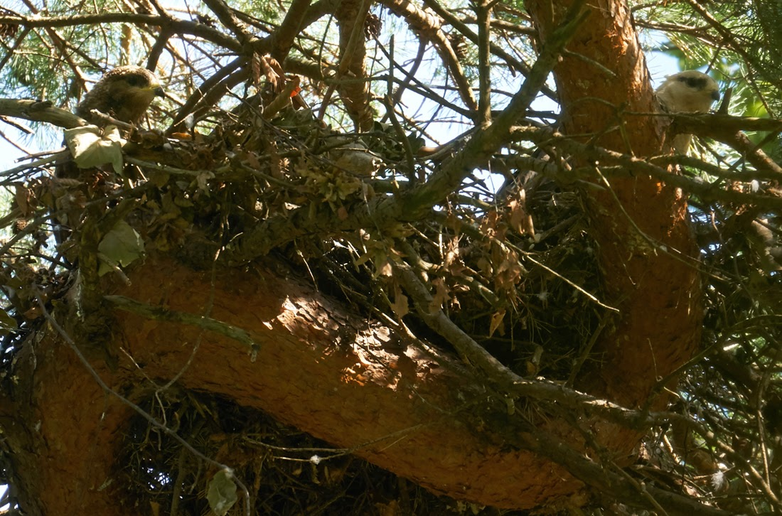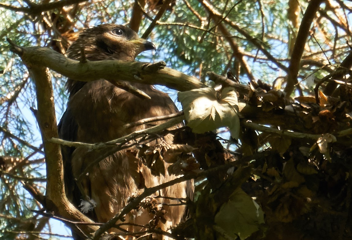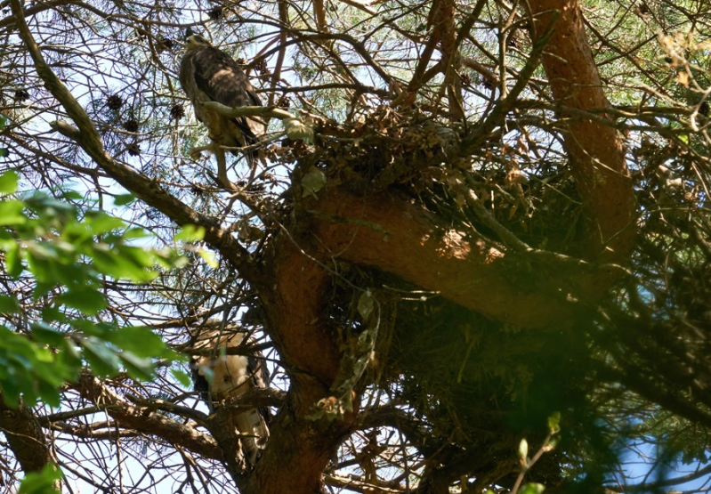 -Alleen het grootste Wespendief-jong liet zich zien. Hij toont inmiddels een koffiemelk-achtige grondkleur.