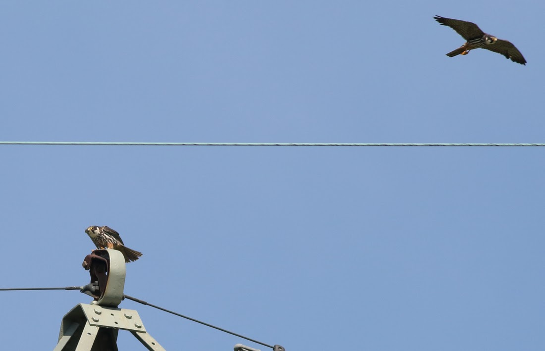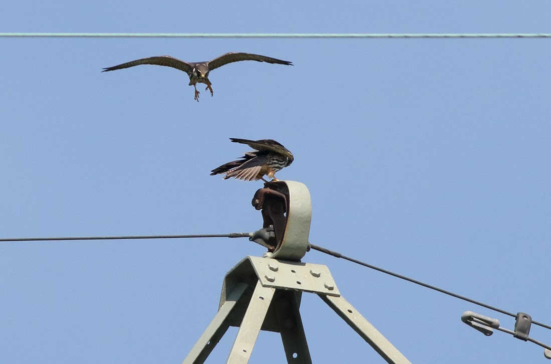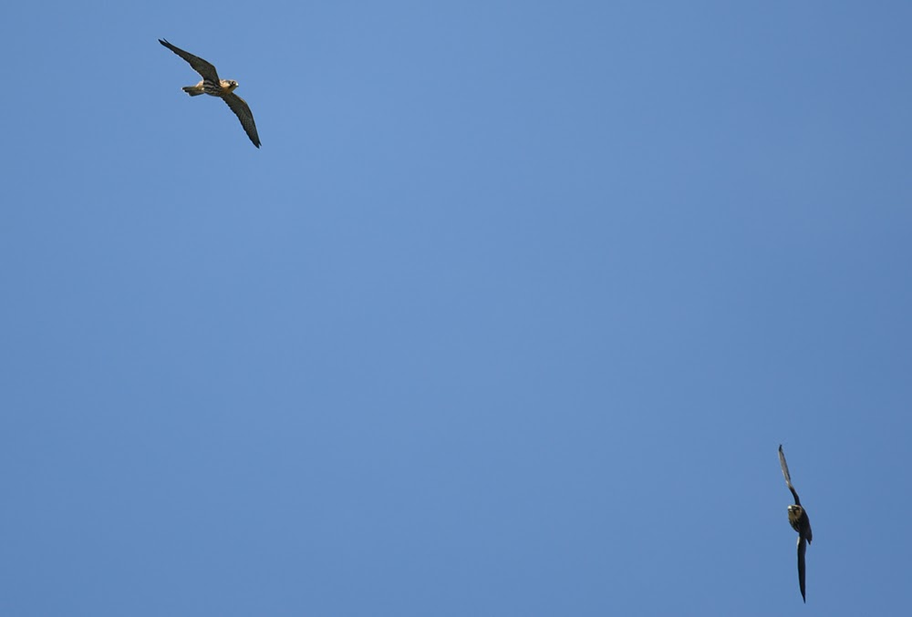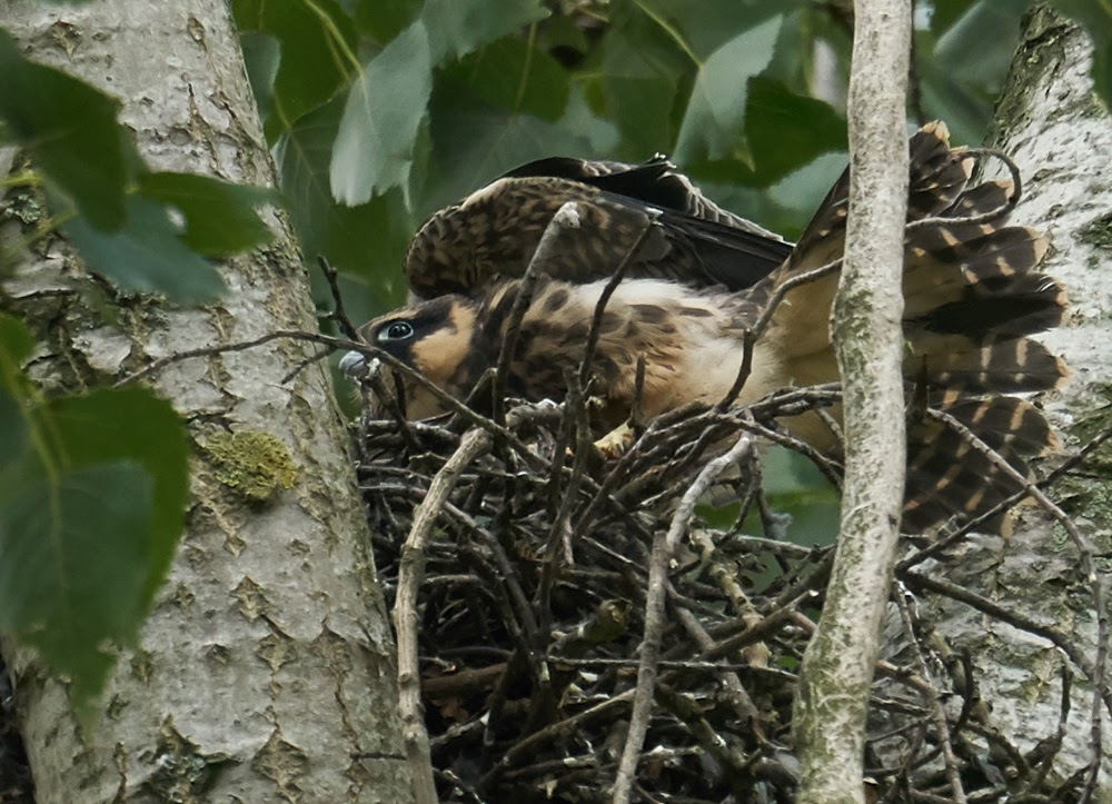 25 Augustus : Fraaie acties bij de Boomvalken.....Een indringer wordt bestookt en een oudervogel laat zich zeldzaam