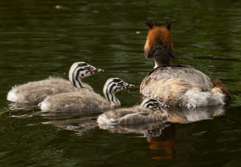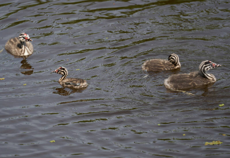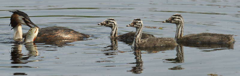 Op dit Futen-filmpje zijn de vrolijk duikende, spetterende en op de rug van moeders klauterende kuikens te zien :