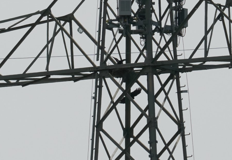 -Even afgestapt voor deze jonge Kraai (r) met oudervogel op mast :