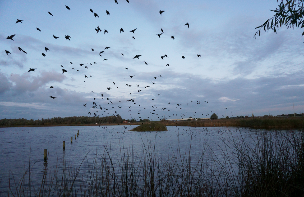 19 November : De Spreeuwen hebben de slaapplaats momenteel aan de vlietzijde van de Vogelplas.