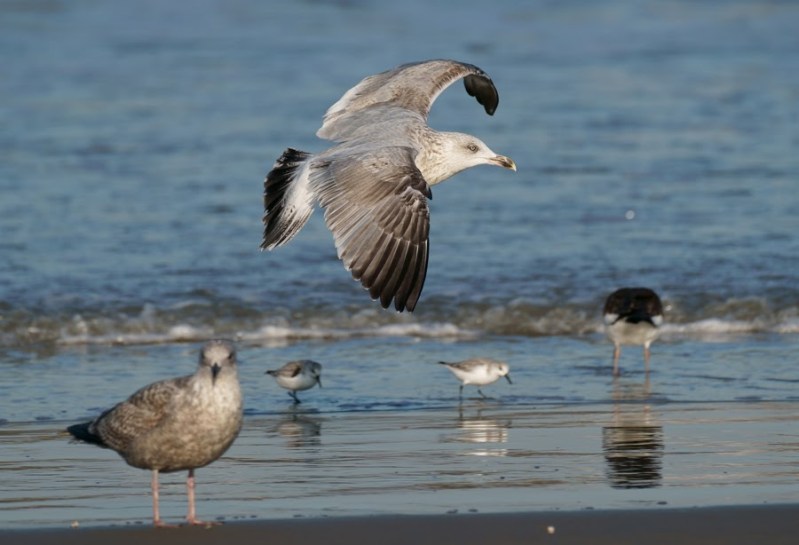 Het is druk met Meeuwen door de werkzaamheden op het strand :
