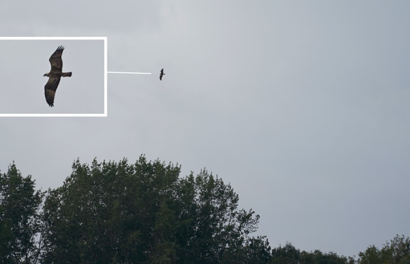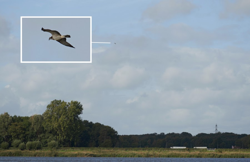 Door de grote afstand en verlies aan contrast heb ik de Vogel voor de duidelijkheid een omlijning gegeven.