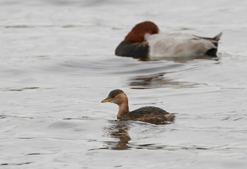 De vaste Geoorde Fuut met Tafeleendvrouw op de achtergrond :