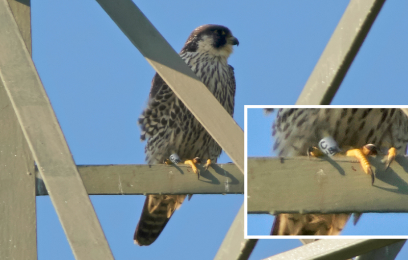 31 Oktober : Op mast 28 een geringde jonge Slechtvalk aangetroffen....Aanvankelijk weigert hij zijn ring te laten zien...)