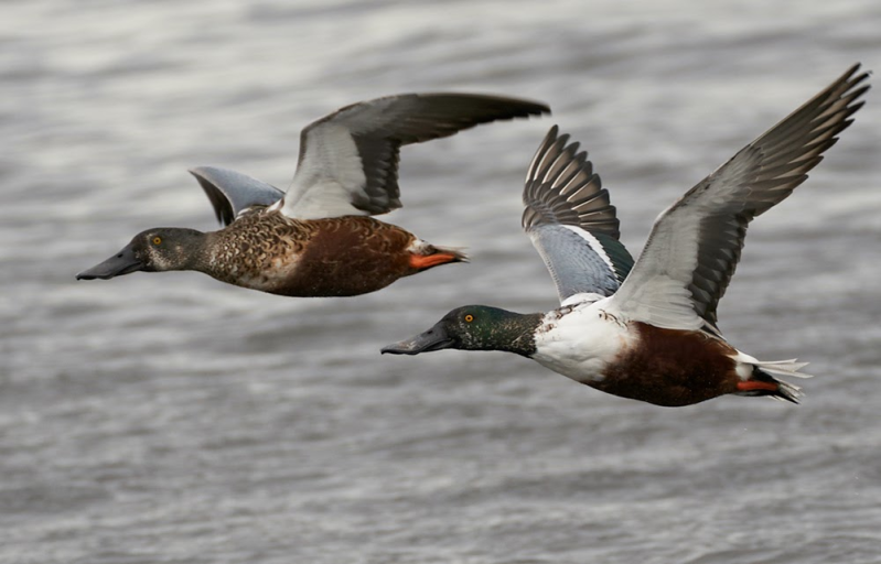 -In de ochtend is het nog redelijk zonnig, de Slobeenden zijn zeer druk met verplaatsingen...: