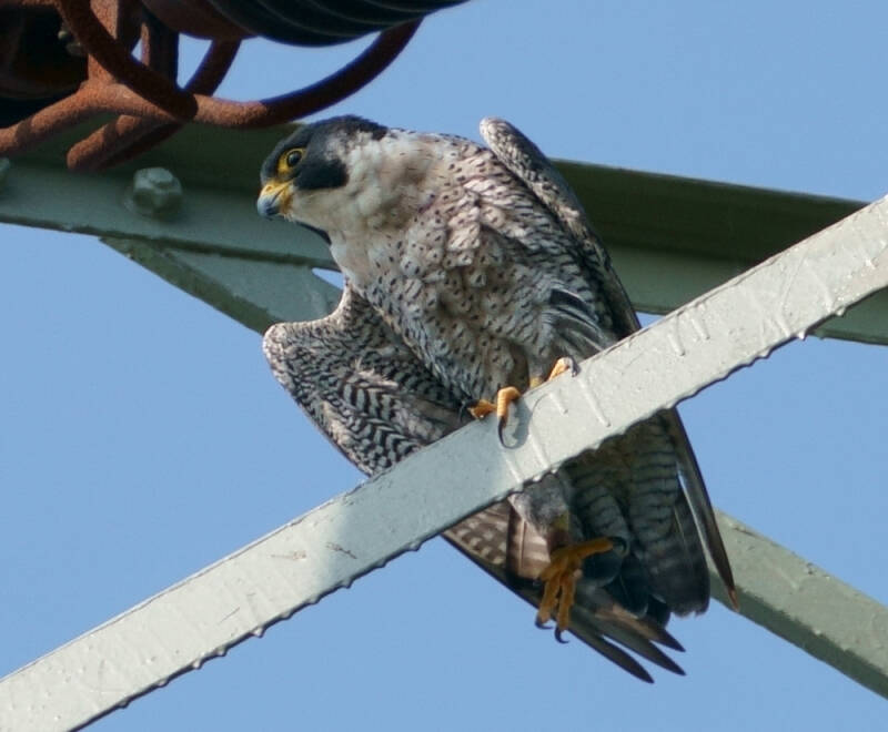 Op de terugweg een kippenvel-moment als ik op mast 18 een Slechtvalk tref.