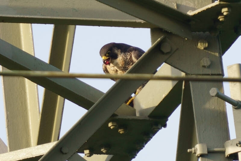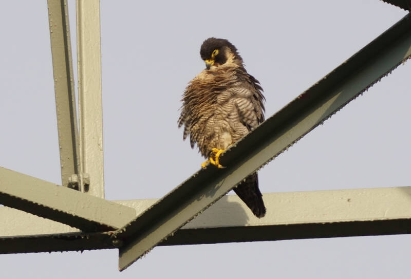 Een verrassing tijdens het checken van de masten was de jonge Slechtvalkman 'HAPje' op mast 23 bij het station :