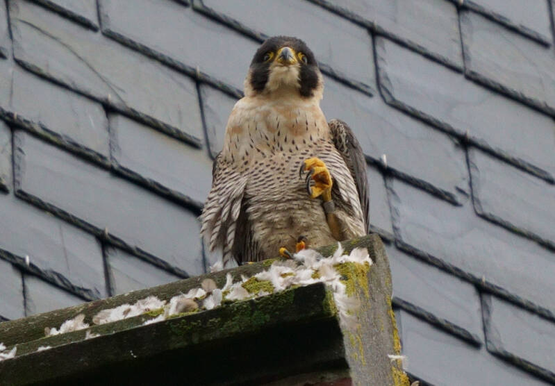 In Voorschoten tref ik bij aankomst voor het eerst een Slechtvalk bovenop de torenspits!