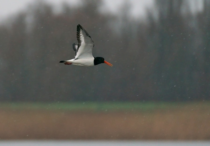 Op de terugweg nog een verrassing in de vorm van de afwijkend getekende overwinterende Aalscholver Snowy White!