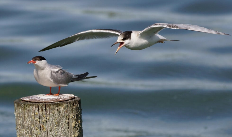 De jonge Visdiefjes beginnen nu met foerageer-oefeningen.