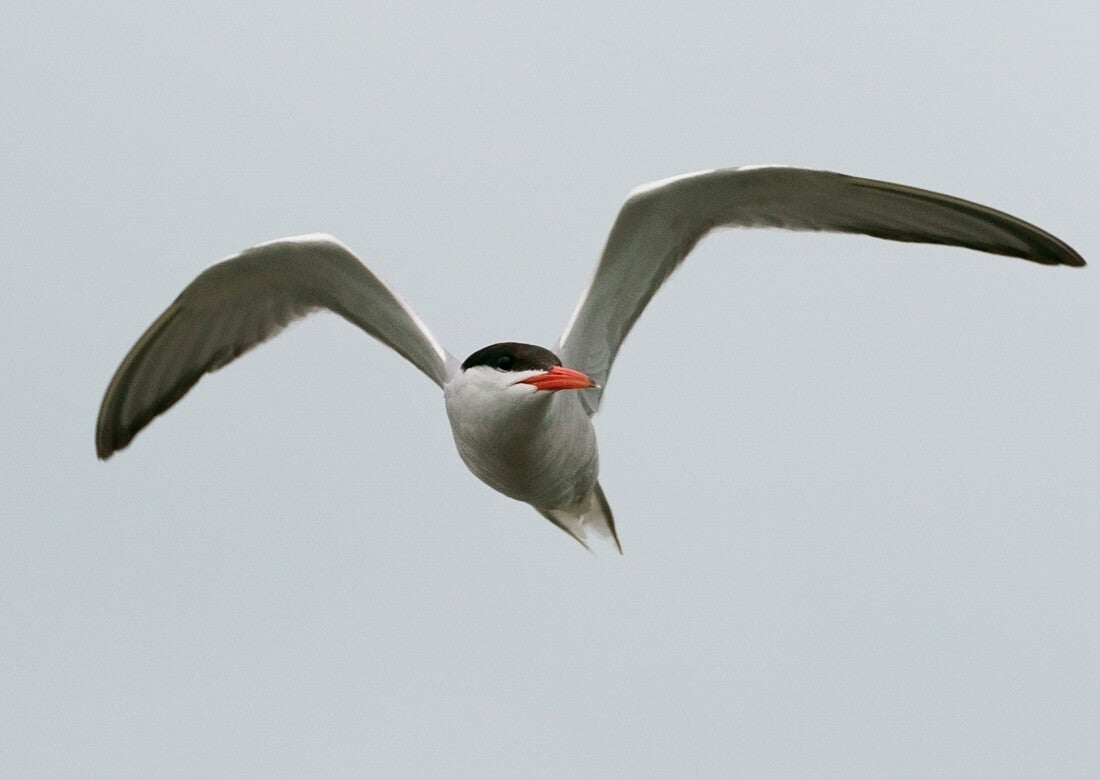 Deze Torenvalkman doet hetzelfde als de Blauwe Reiger en laat de vleugelbochten afhangen :