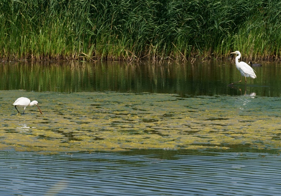 In het avondzonnetje wordt de smerige algensoep weer goed zichtbaar...