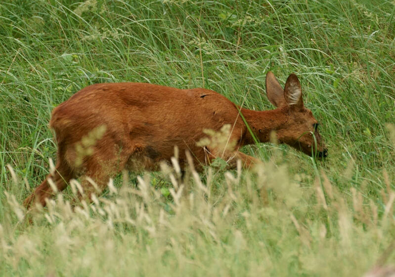 In de late middag een Ree op het grasland :