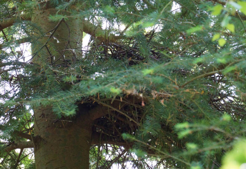 -Dit is pas de eerste tref met een Wespendief op het nest sinds er zo'n 2 weken geleden vers loof zichtbaar was als enig bewijs van 'activiteit'.