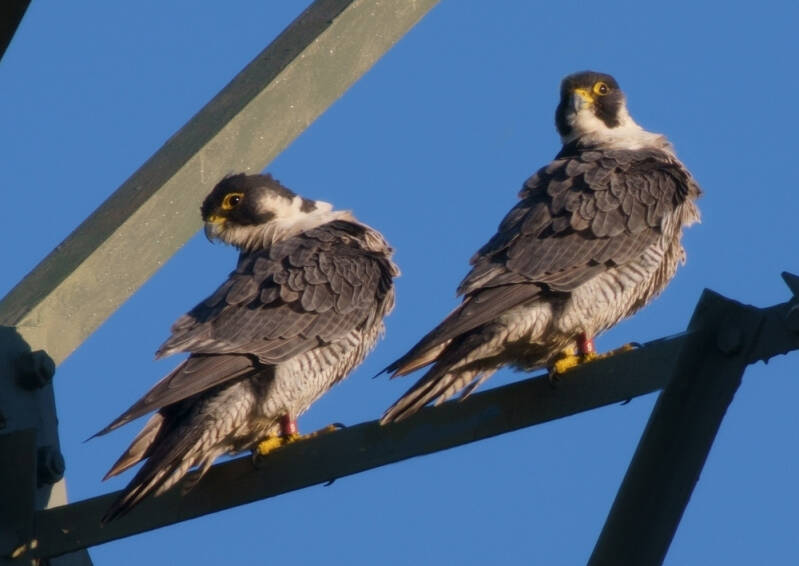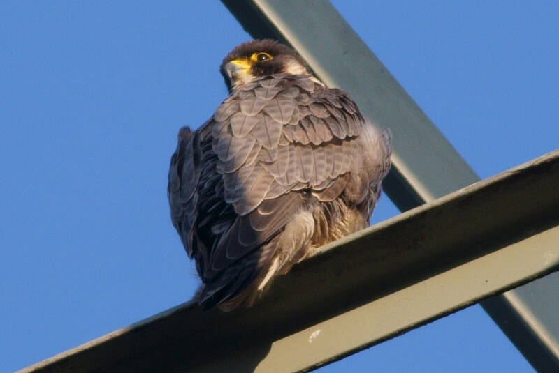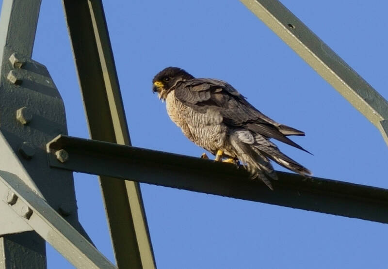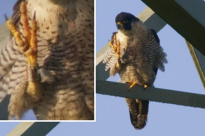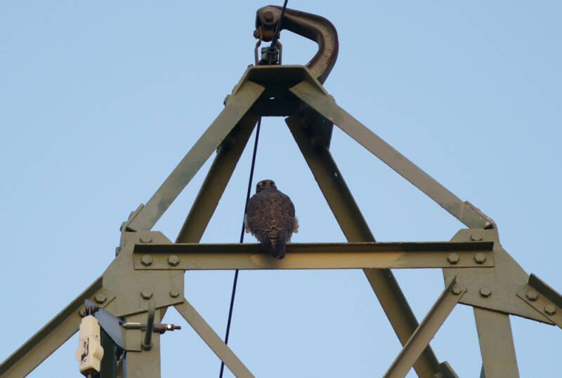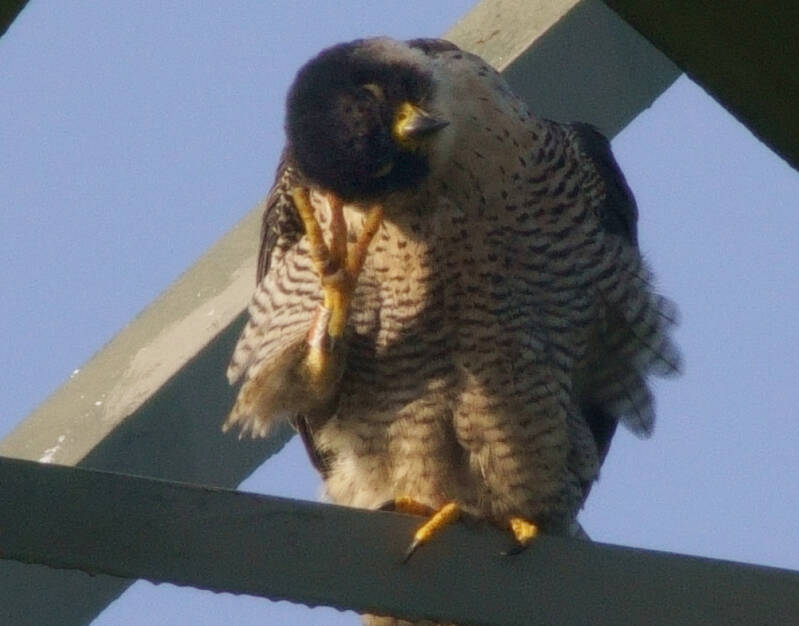 Deze Valk weigerde langdurig haar ringen te laten zien en daarbij zit ze ook nog eens op een zeer lastige stek om te fotograferen..: