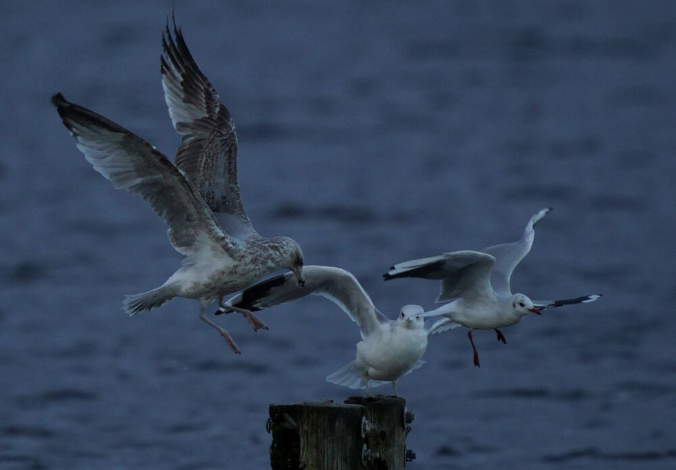 Van links naar rechts Zilvermeeuw, Stormmeeuw en Kokmeeuw :