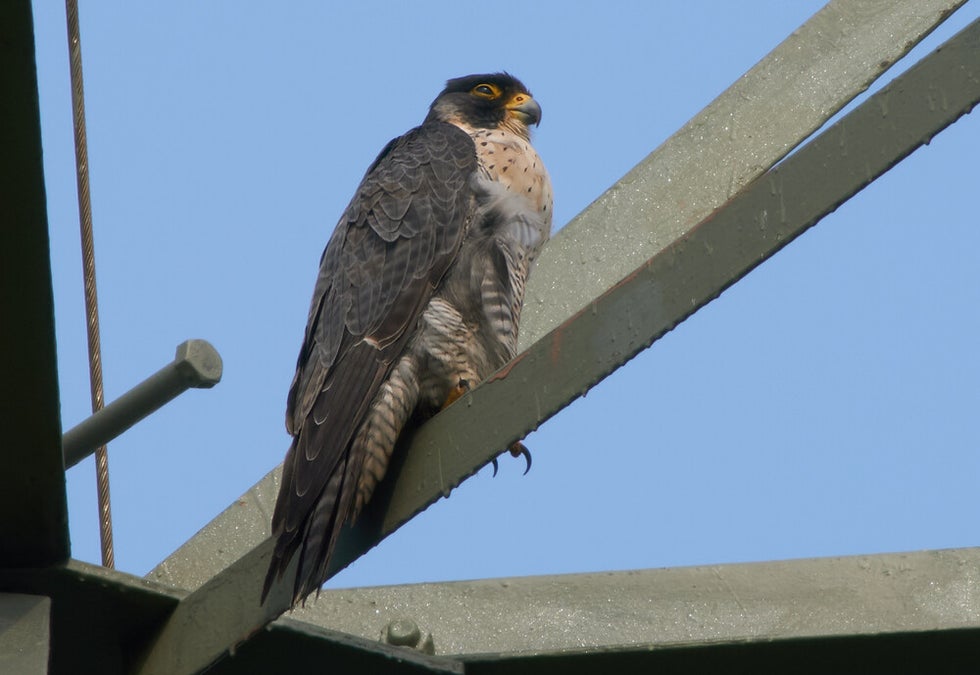 In Voorschoten in de top van mast 28 één van de Boomvalken :